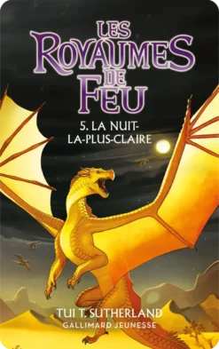 Une terrible guerre divise les royaumes de Pyrrhia. Selon une mystérieuse prophétie, seuls cinq jeunes dragons nés lors de la Nuit-la-plus-Claire pourront mettre fin aux combats et apporter la paix. Mais les élus, Argil, Tsunami, Gloria, Comète et Sunny rêvent de liberté plutôt que d’accomplir leur destin. Un univers riche et fascinant, une intrigue captivante: partagez l’aventure de cinq jeunes dragons à l’amitié indéfectible, aussi valeureux qu’attachants.