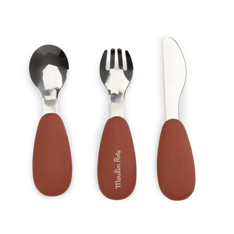 Le set de couverts silicone La Forêt Mawa – Moulin Roty est spécialement conçu pour accompagner les enfants dans l’apprentissage des repas en autonomie. Composé de trois couverts (cuillère, fourchette et couteau), il associe inox et silicone pour garantir à la fois solidité et confort d’utilisation.