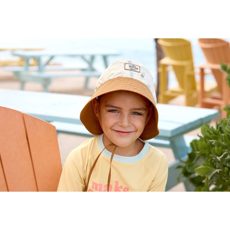 Le bob LÄSSIG protège la tête, la nuque et les yeux des enfants (de 3 mois à 6 ans) grâce à son indice de protection UV 80. Le matériau extérieur séchant rapidement et la bande élastique derrière la tête offrent un grand confort.