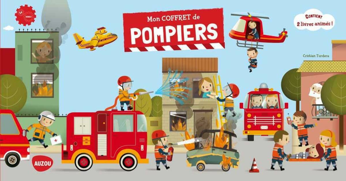 Mon coffret de chantier contient 2 livres tout-carton, aux superbes illustrations colorées, pour découvrir l’univers de la construction à travers deux thématiques : les pompiers s’organisent et les pompiers débarquent.