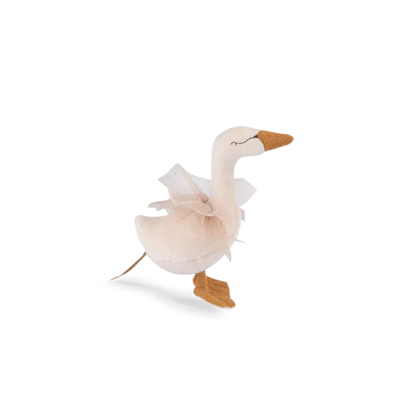 Hochet cygne en velours tout doux. Ailes et bec dorés, ce petit compagnon fera craquer bébé.